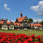 Rotorua is situated on the edge of the lake with the homonyms name in the center of the northern NZ island.