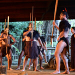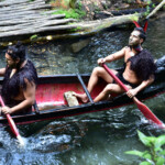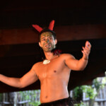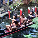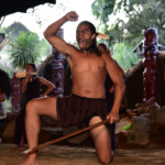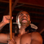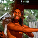 The Maori warriors made a glorious entrance : they paddled down the sacred river in a war canoe, all tattooed and with menacing faces. Afterwards they presented us their traditional weapons, musical instruments, songs, superstitions and customs. And of course their most famous dance – the Haka, which was used to impress the enemy and to motivate the warriors before a fight. We also learned that the constant movement of the palms and tongue is a sign of LIFE – those who are dead are not moving, so during a traditional maori dance every living person must shake his palms and pull out the tongue, as well as show the white part of the eyes.