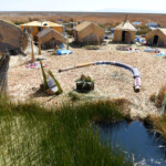 The Uros are still on the lake, with the same language, costumes and traditions as hundreds of years ago. Their story and their current lives are just incredible: they used to live up in the mountains before Incas came to conquer them, time when they descended and discovered Titicaca. Tired of running and paddling on the lake they observed the unlimited reeds that Titicaca offered and thought creatively or in modern words – “out of the box”: reeds’ roots together with its mud and dried reeds put together to build an island, dried reeds to build houses and indoor furniture, reeds to build boats, reed’s roots to feed the tribe…their whole life made out of reeds! And it is still the case today!!! 82 small floating artificial islands made by their hands are still on the lake, alive! The Uros are born there, grow up, marry, have children and die on the reeds islands, with the same traditions as hundreds of years ago. They feed with the fish they fish, the birds they hunt and reeds; they make their own nicely colored clothes, they sing, they dance, they are happy! They don’t need money…what for? Nature offers them everything. Would you imagine such a life?